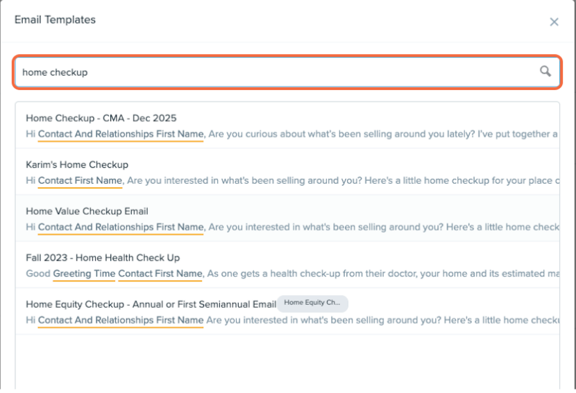 3. Type “home checkup” in the email templates’ search function.