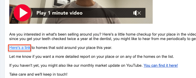10. Add a link to the pertinent recent sales in the email (include MLS sales of similarly-styled homes since last equity update, or at most in the last 6 months-1 year; you want at least 2-3 sales to be included in the linked list, but no more than 5-10).