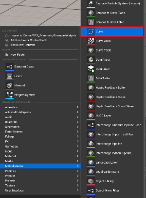 Click Right Mouse Button inside the Content Browser and select Miscellaneous / Cruve and select as CurveClass CurveFloat.